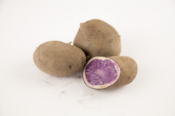 - Redelijk vastkokende aardappel met een paars met witte kleur