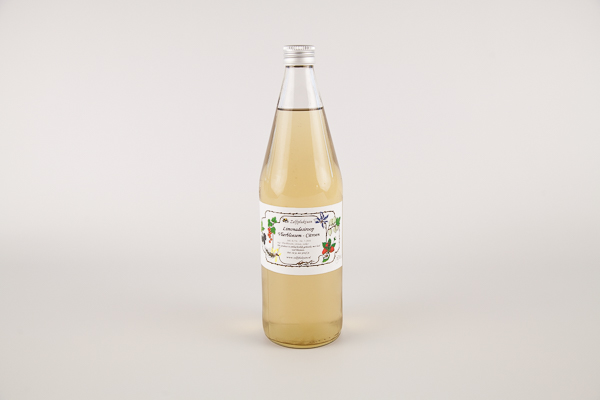 (H)eerlijke limonade gemaakt met heel veel bloemen geplukt van eigen vlier bomen uit de Zelfpluktuin op Texel. Met een minimum aan suiker en citroen.